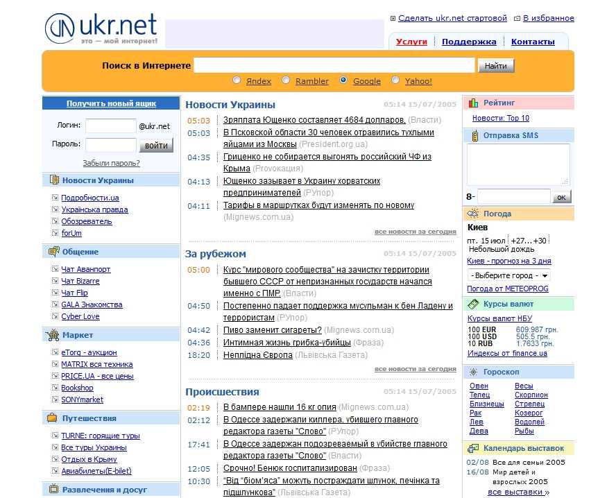 По популярности на начало 2007 года в Украине лидировал сайт Meta.ua. Такие данные приводит компания Gemius. Также большой охват аудитории имели ресурсы redtram.com.ua, fraza.ua, obozrevatel.com и online.ua. А среди зарубежных – Mail.ru, Rambler, Yandex, Yahoo и Google.