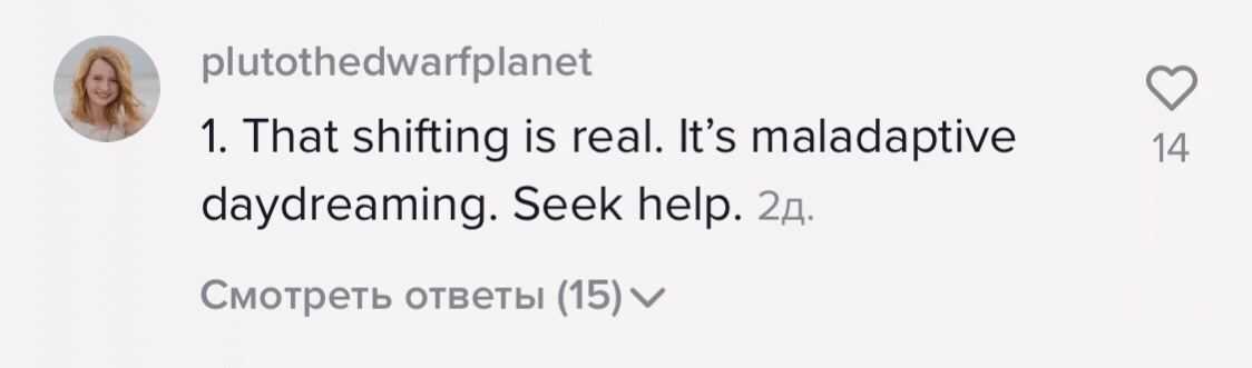 Впервые о шифтинге заговорили на Reddit — американском ресурсе вроде нашего Пикабу. И совсем недавно шифтинг перекочевал в Тик Ток, где хэштег #shifting уже набрал более 300 млн просмотров пользователей со всего мира.