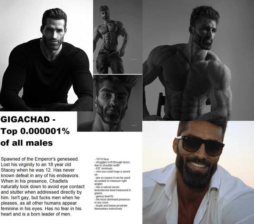 Согласно Incel Wiki — это «Чед на максималках», мужчина, входящий в топ 0,1% наиболее привлекательных людей планеты. Его тело идеально развито и эстетично, а физические кондиции — на пике. Если Чед просто демонстрирует маскулинность, то Гигачад — её идеальный пример. На Incel Wiki иронично описывают реакцию женщин на таких людей как «моль на лампочку».