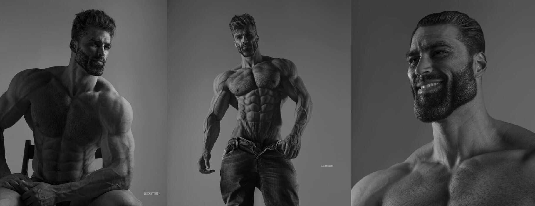 Мемоделы не раз находили в соцсетях и реальной жизни прототипов Чада, но его ультимативную версию — Гигачада — людям подарил фотопроект SLEEK’N’TEARS. Его создательница, москвичка Криста Судмалис, воспевает в своих снимках мужское начало, рассказывала она в интервью ещё в 2014 году. Исходя из сайта SLEEK’N’TEARS, позировали для кадров как минимум пятеро моделей, но олицетворением мемного альфа-самца стал лишь один — Know Your Meme пишет, что его зовут Эрнест Халимов. Оригиналы фотографий с ним можно посмотреть здесь и здесь.