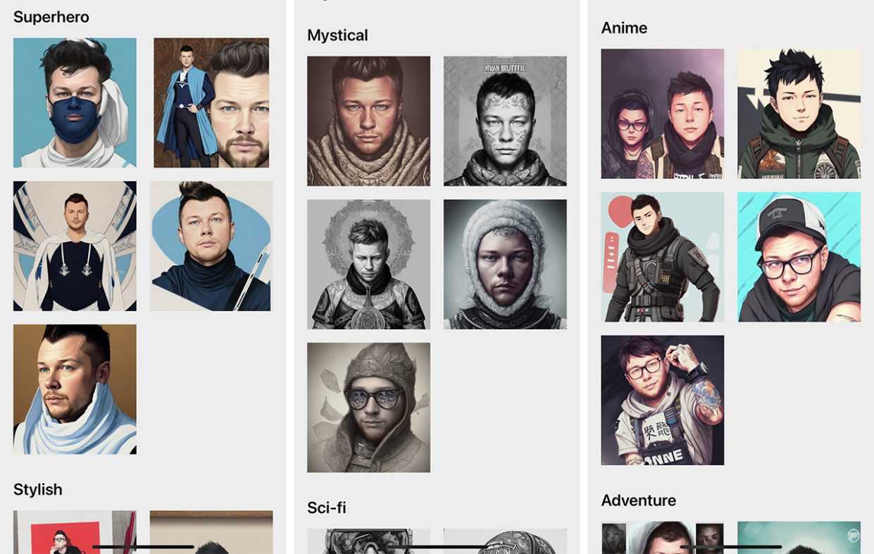 Как и Lensa, PREQUEL умеет создавать целые наборы аватарок