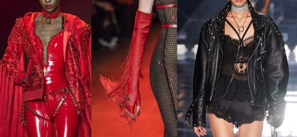 Стилистику тренда определяют мотивы, образы и атрибуты дьявольщины и чертовщины (satanic motifs): естественно, черный и красный цвет, языки пламени, чокеры, шипы, колючая проволока (barbed wire), аттрибуты готического стиля, темный мейкап и темные цвета в целом.