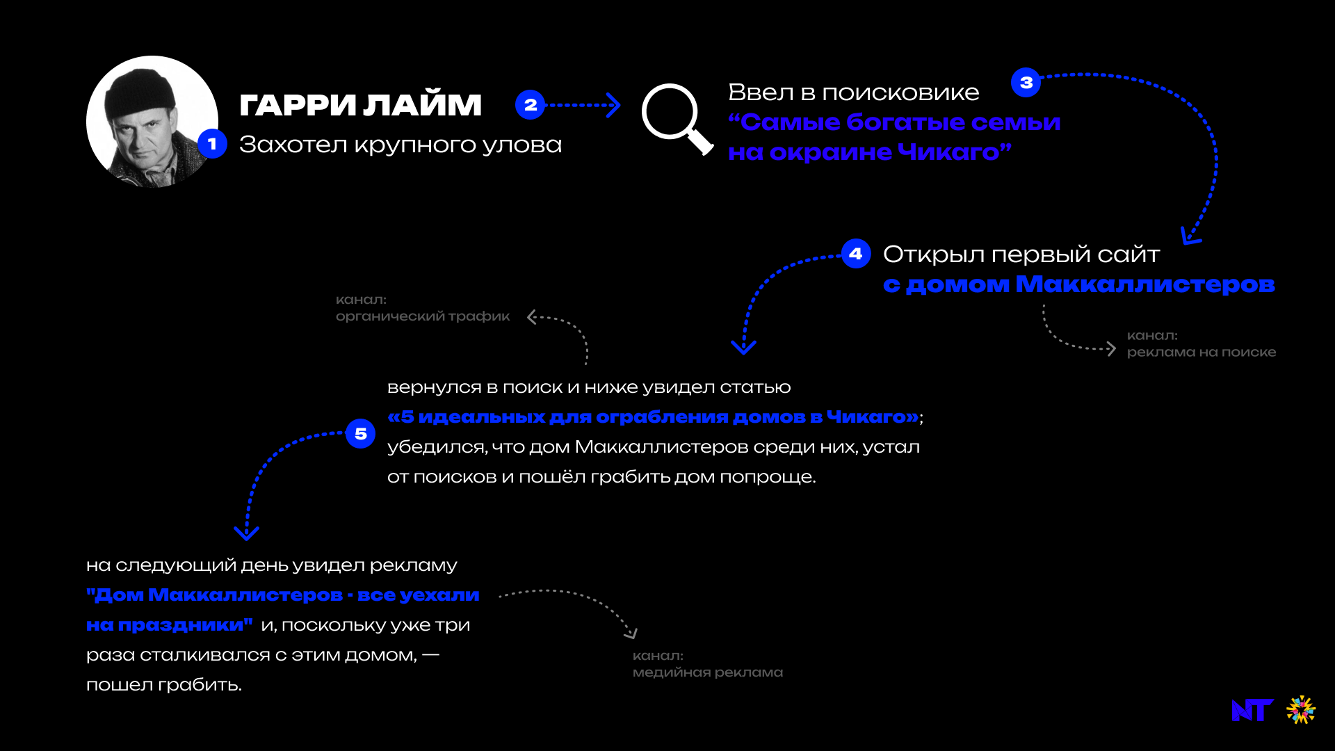 Целевое действие не было бы совершено без участия остальных каналов. Путь пользователя к покупке можно сравнить с маленькой жизнью, где каждое событие играет свою роль и влияет на то, что будет дальше.