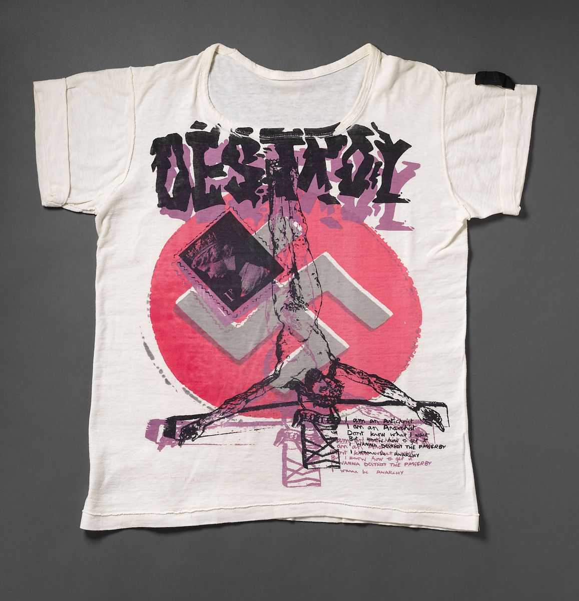 Одновременно с протестами в Америке по ту сторону Атлантического океана набирало обороты панк-движение. Дизайнер Вивьен Вествуд и музыкант Малкольм Макларен одними из первых воспользовались силой графической футболки. В отличие от США, где большинство проблем было связано с исключительно политической активностью, панк-движение Великобритании основывалось на общем социальном кризисе молодежи. Таким образом, футболки Вествуд и Макларена охватывали широкий спектр вопросов — от религии до фашизма. Одним из самых популярных дизайнов был перевернутый крест со свастикой под словом «DESTROY».