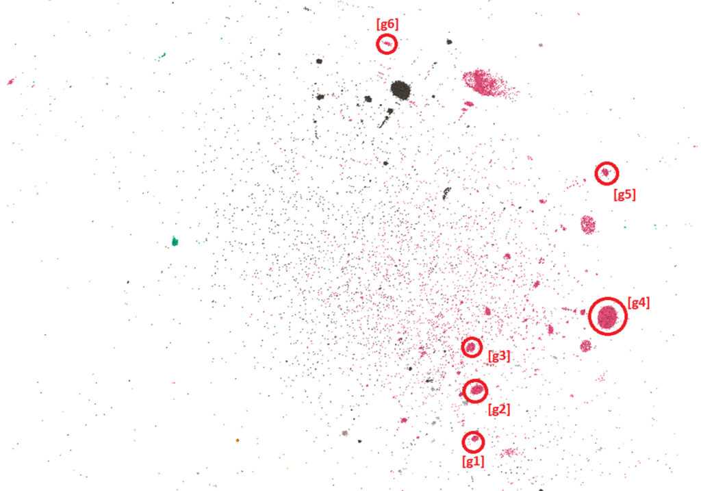 - crisp-паттерн — комментаторы образуют хорошо различимые группы внутри кластера,