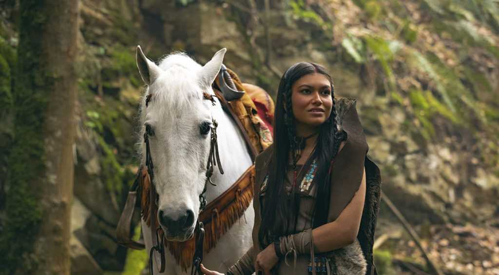 Всё это непотребство происходит в абсолютно анти-волшебной Нетландии, которая здесь выглядит как какой-нибудь ирландский остров (похожий мы видели в «Банши Инишерина»). Русалок как полноценных персонажей больше нет, индейцев тоже. Всё указанное выше пропущено через серо-зелёный мрачный цветокор, разумеется, чтобы картинка была максимально невзрачной и неинтересной. Бедная Яра Шахиди просто сливается с фоном!