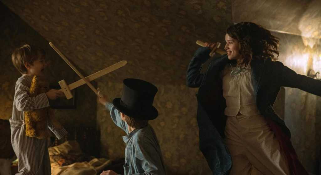 Но даже если мы притворимся, что «Питер Пэн и Венди» – единственная экранизация, то фильм всё равно рассыпается как карточный домик. Лоури словно взял все конфликты и дилеммы, поставленные Барри, и выкинул их в окно, заменив на совершенно новые и не вписывающиеся в контекст истории кивки в сторону современной повестки.