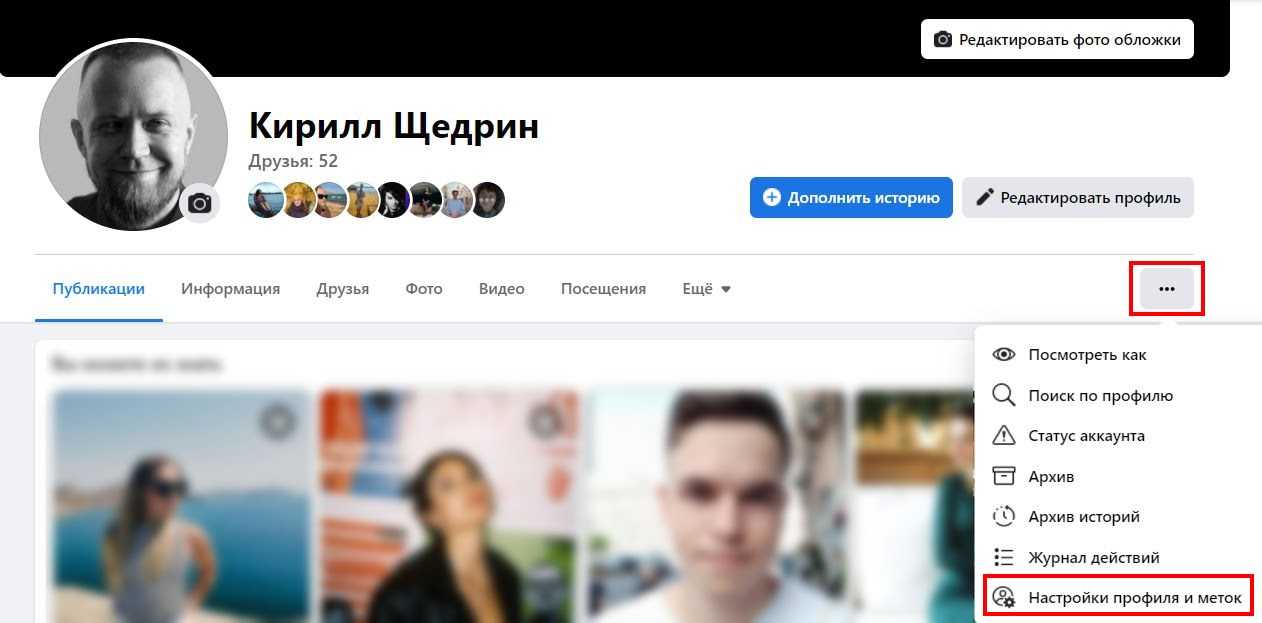 Чтобы запретить такие действия или настроить уровни доступа, перейдите в профиль и вызовите меню кнопкой с тремя точками. Выберите «Настройки профиля и меток».