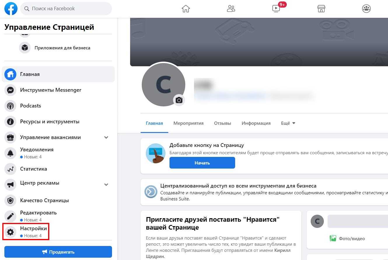 Если страницей управляют несколько людей, создатель может настроить их уровни доступа. Для этого нужно перейти со страницы в ее настройки (нижний пункт левого меню).