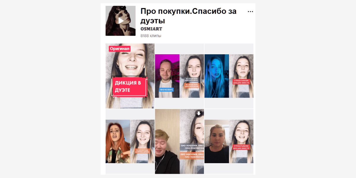Урок на дикцию – пример ролика в ТикТоке, который создан специально для дуэтов. Любой пользователь может взять его как шаблон и выполнить задание, заполнив паузы после слов диктора