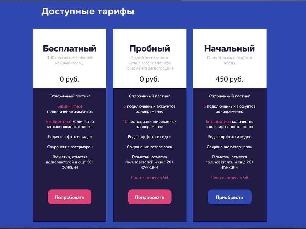 Для личных нужд использую бесплатный тариф и его вполне хватает для планирования публикаций в Инстаграм* и Фейсбук*