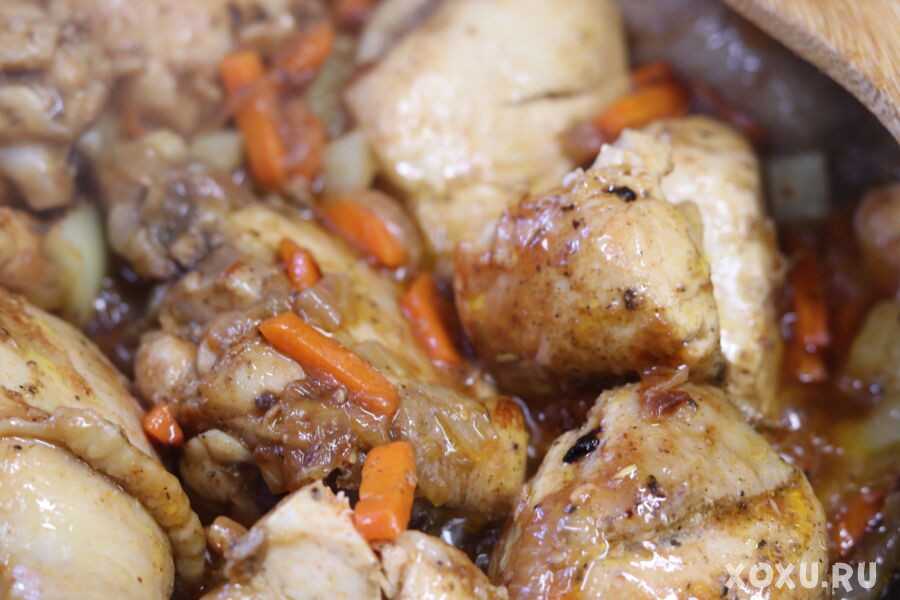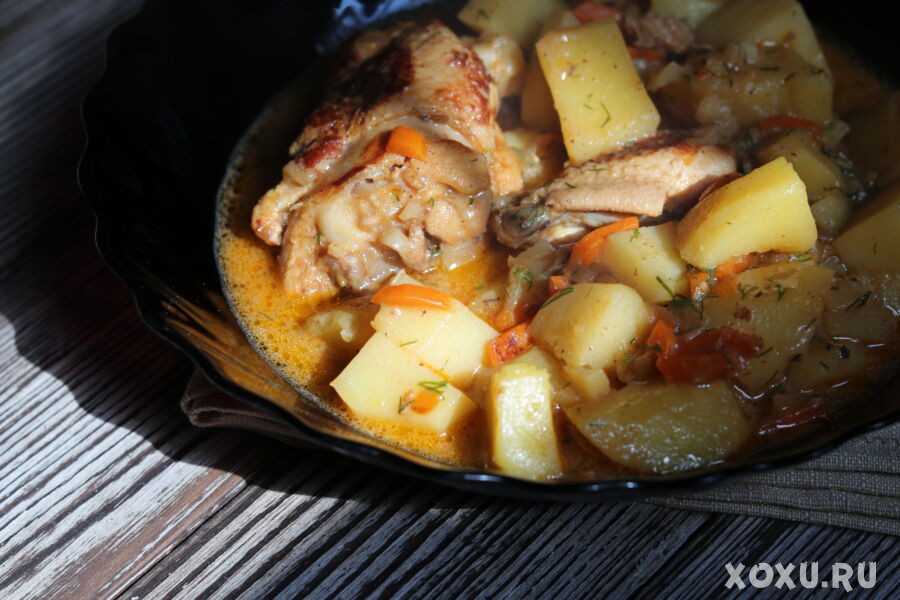 Тушеная курица (рецепт с картошкой, морковью и болгарским перцем)