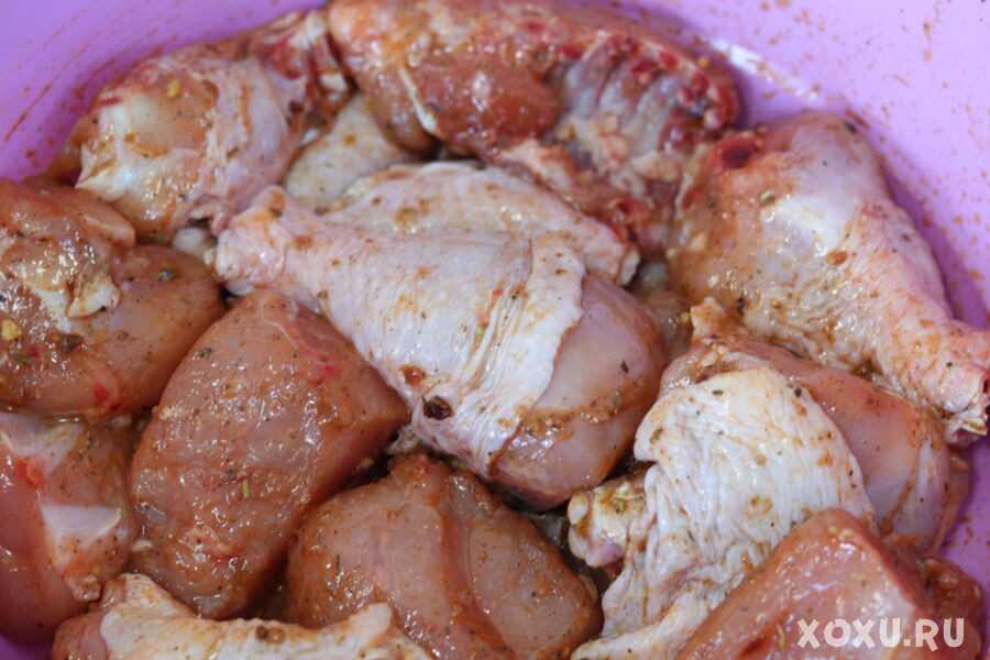 - Соединить с маринадом, размешать и оставить на пару часов.