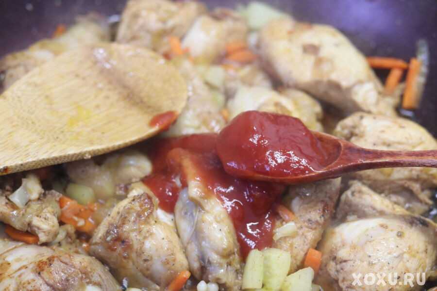 Добавляю две средних ложки томатной пасты, как показано на фото ниже…