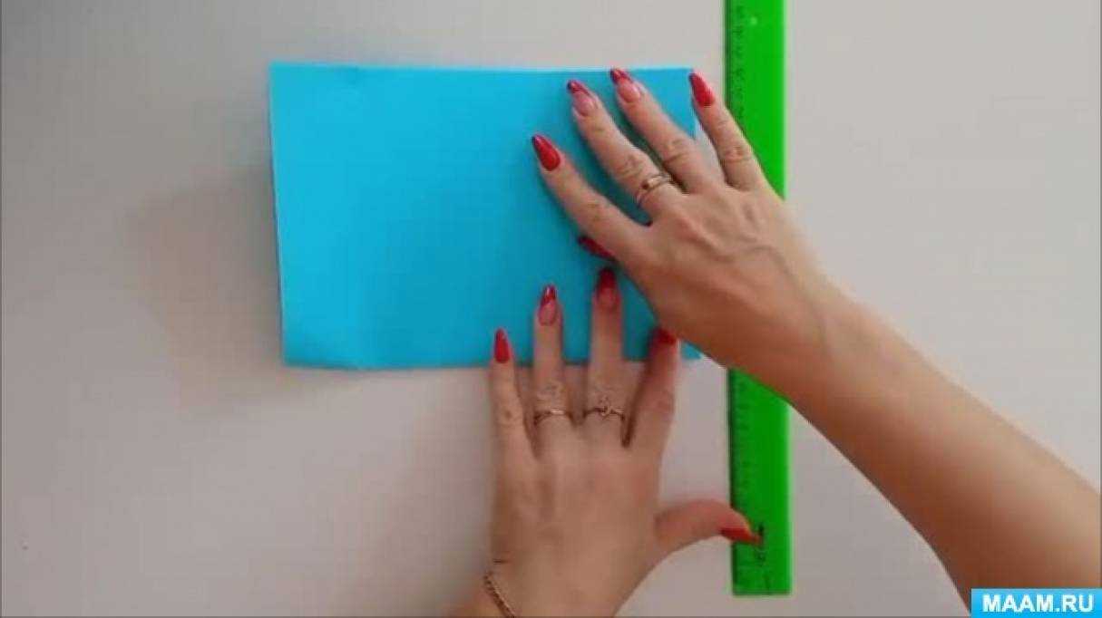 - Приложите нижнюю часть листа к середине. Наметится линия, запомните её. Разверните бумагу. Приложите верхнюю часть листа к той линии. Снова вернитесь к исходному положению.