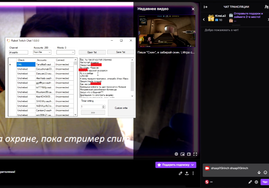 - Сквад занимался накруткой зрителей и зарабатывал на продаже рекламы, а в конспирологических целях для общения между собой был придуман свой сленг: «машина» – накрутка, «ключи» – доступ к накрутке, «ехать на 150» – крутить онлайн на 150 человек, «водитель» – человек, который во время стрима помогает крутить ботов и создавать активность в чате. Скриншоты с программами для «водителей» – ниже (от первой простой версии, к более сложной).