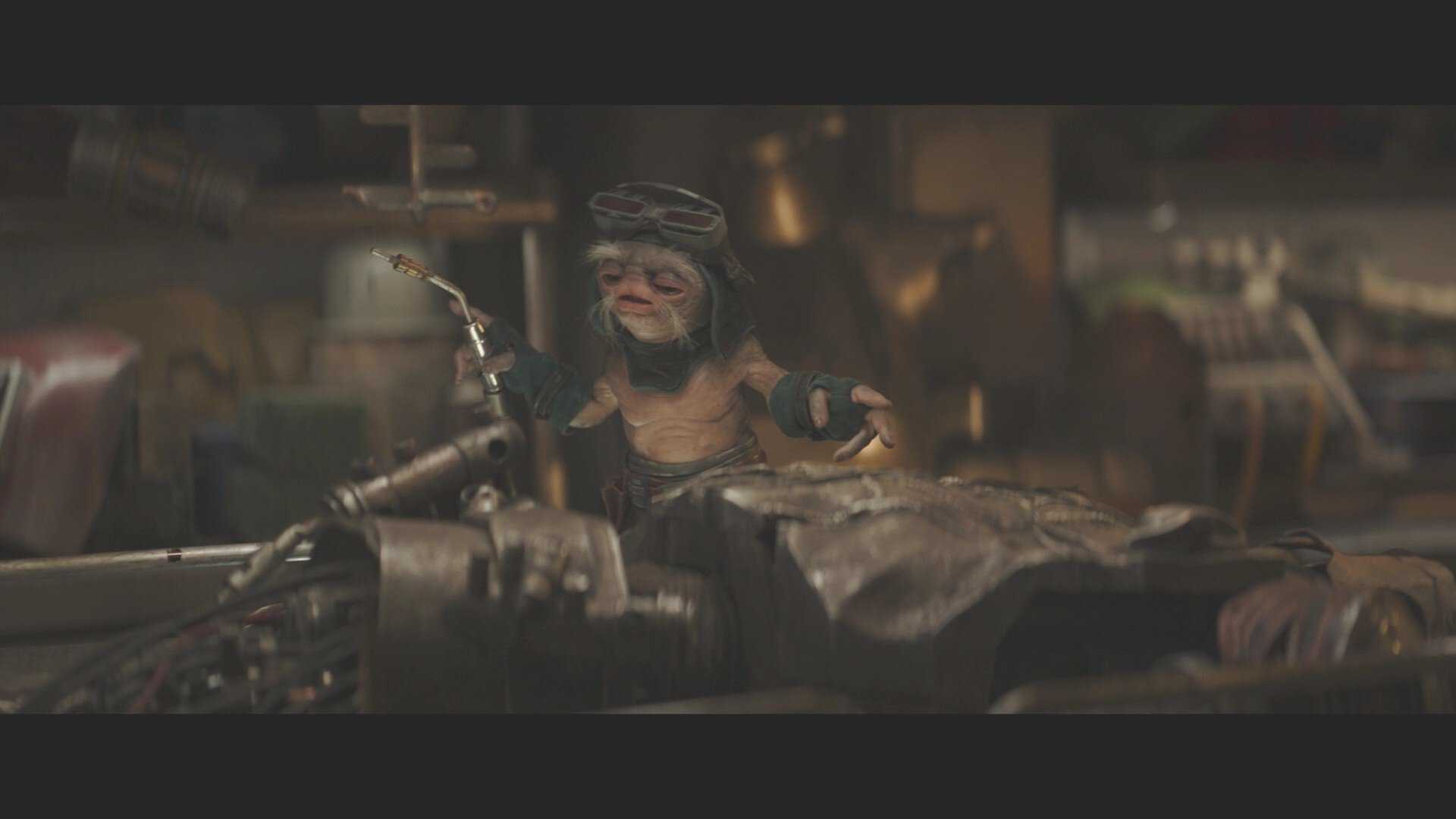 А когда Джарин отнесет робота на ремонт, мастерами окажутся невыносимо милые чудики, которые смеются над героем и убегают от назойливого Грогу. Даже эту незначительную сцену сделали клевой.