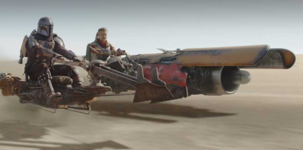 Другой пример — спидеры. Маршал (герой Тимоти Олифанта) рассекает по пустыне на спидере, сделанном из под-рейсера Анакина Скайуокера: