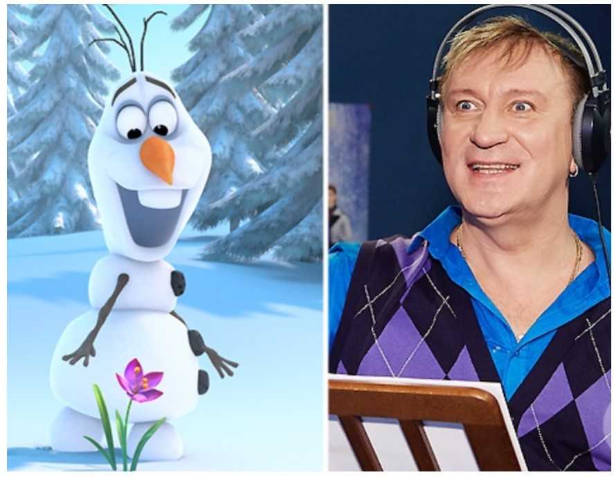 В русском дубляже забавный снеговик говорит голосом известного советского и российского певца, композитора и актёра.
