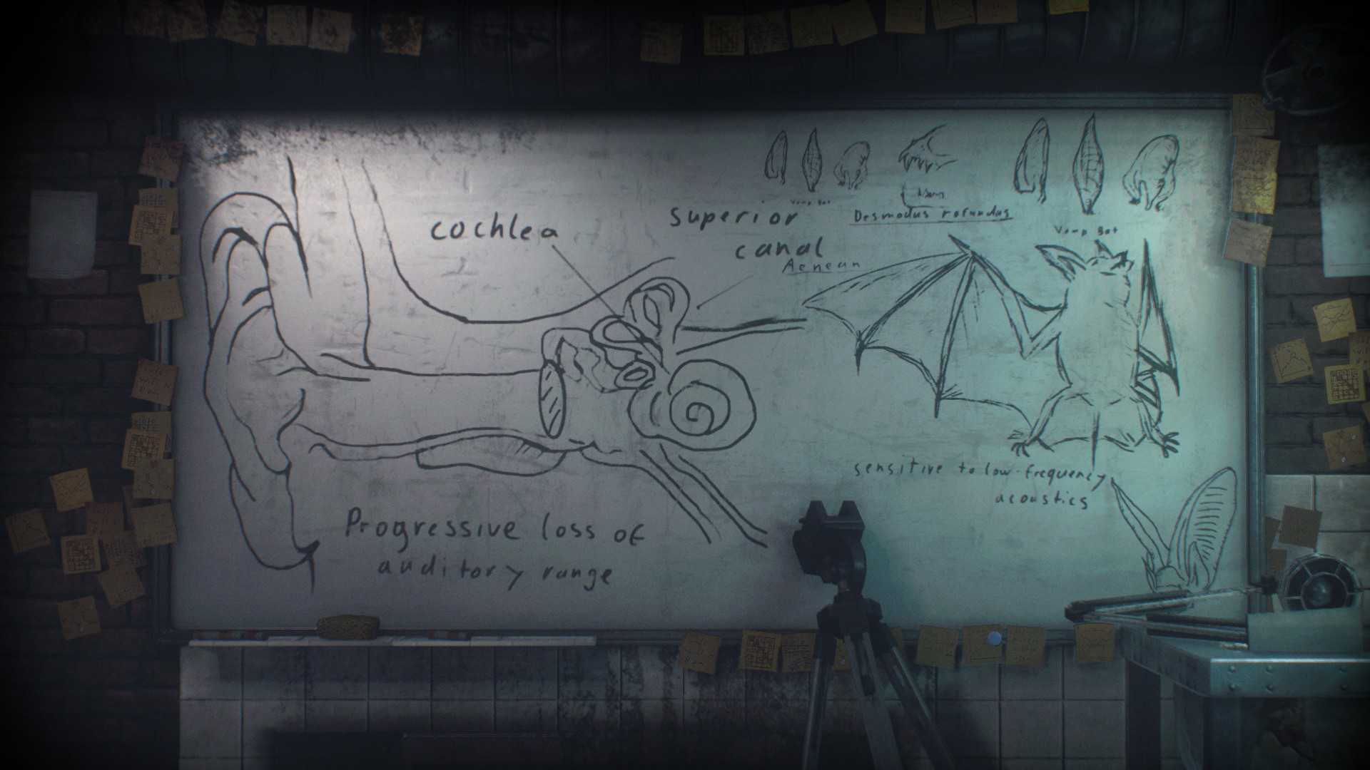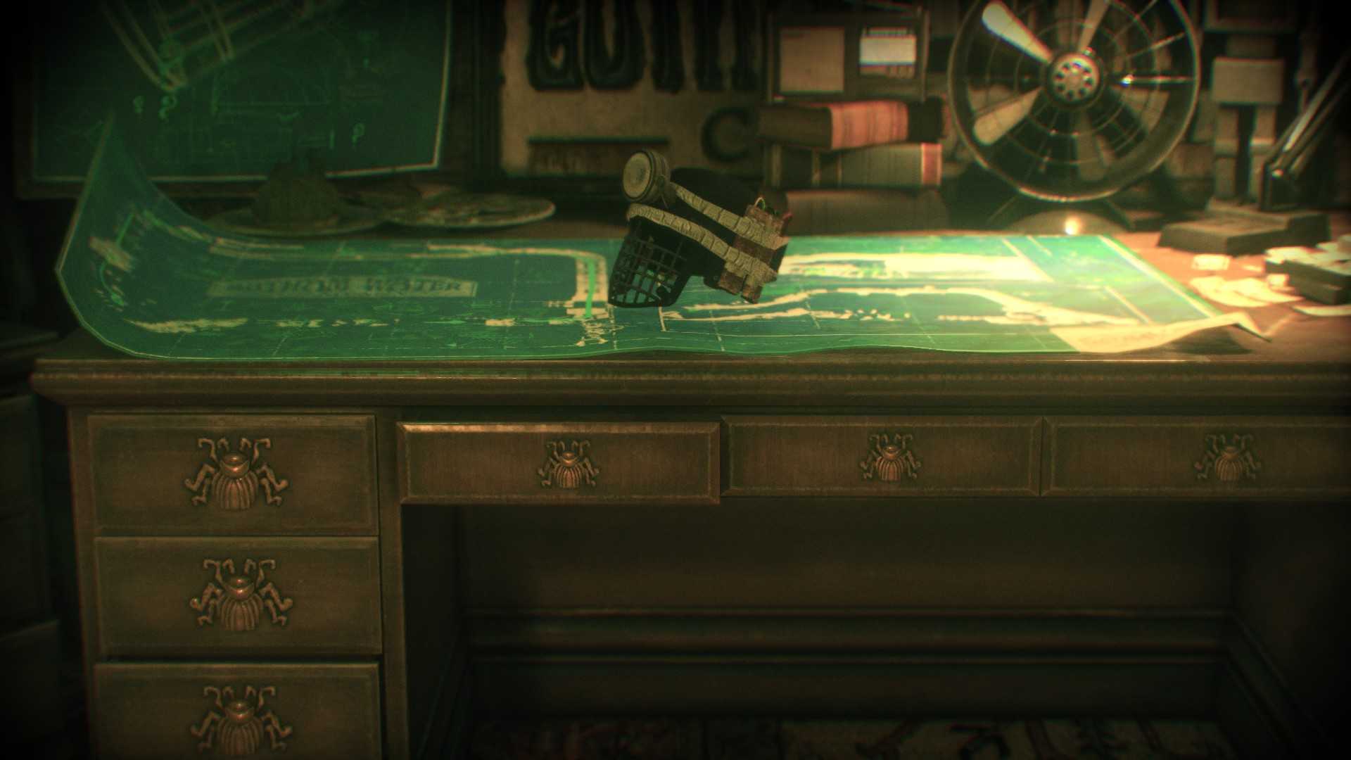 Чертёж на столе, за дверью с кодовой панелью, которая находится в дальнем левом от входа углу комнаты с последним испытанием для спасения Кошки. (3221,1898°)