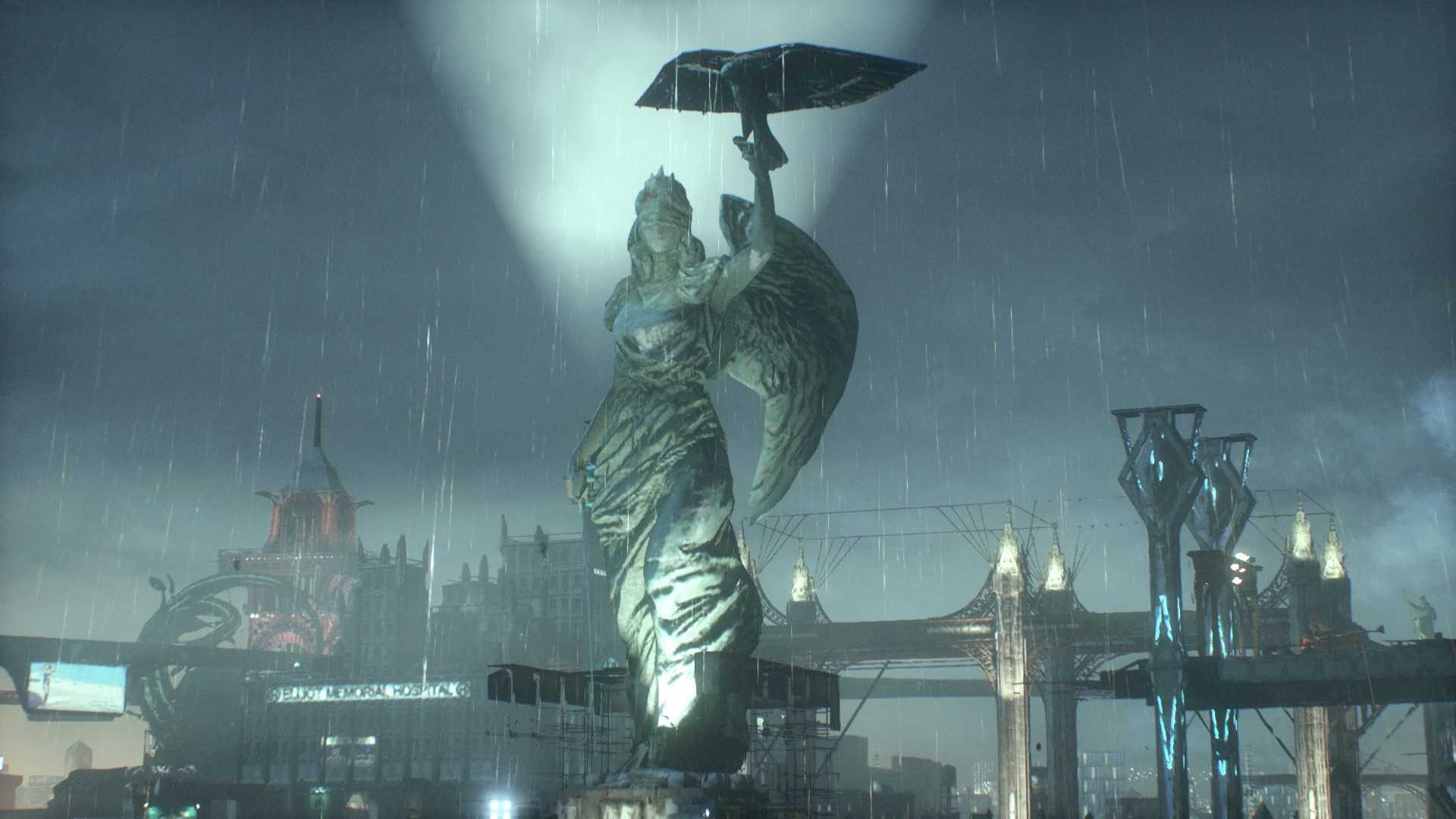 Лечебница “Аркхэм”, к которой ведёт мост вдалеке. (2323,3156°)