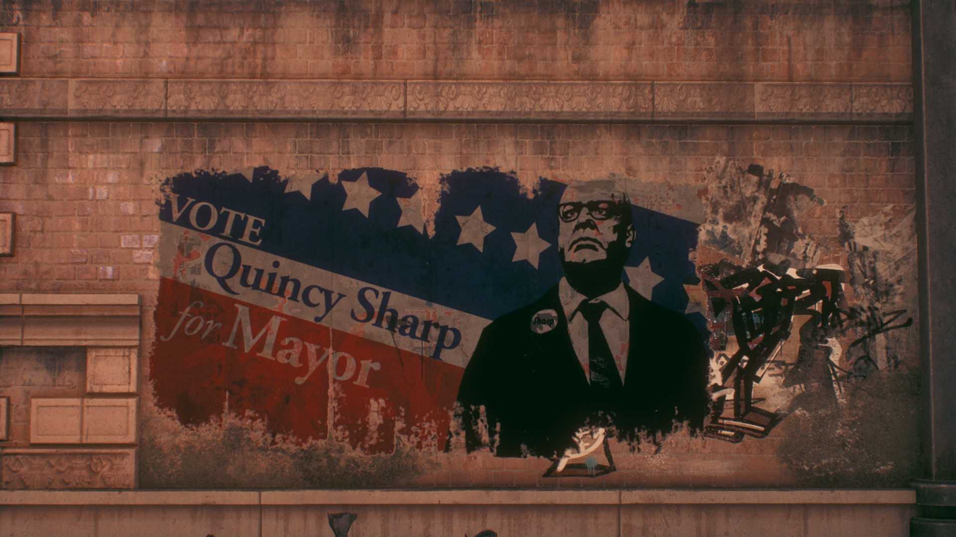 Плакат Шарпа на стене, за кинотеатром. (3160,2658°)