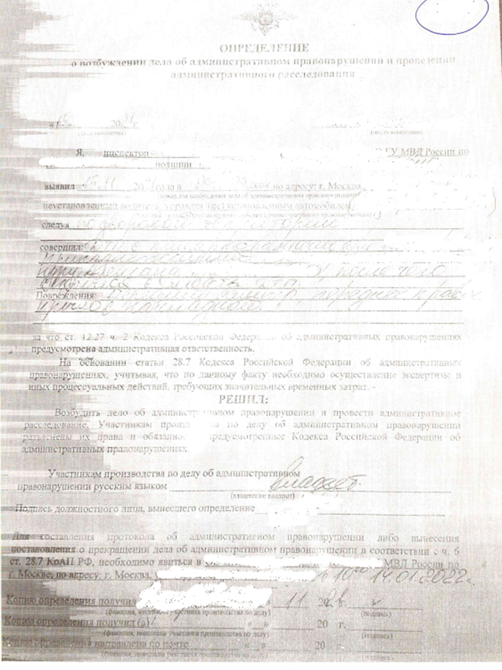 Мне дали бланк объяснения, где я расписал все, что знал. В итоге получил определение о возбуждении дела об административном правонарушении.