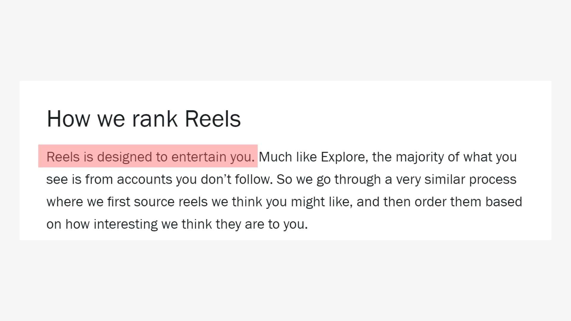 Формат рилс создан, чтобы развлекать людей, поэтому алгоритм настроен показывать в ленте как можно больше фан-контента.