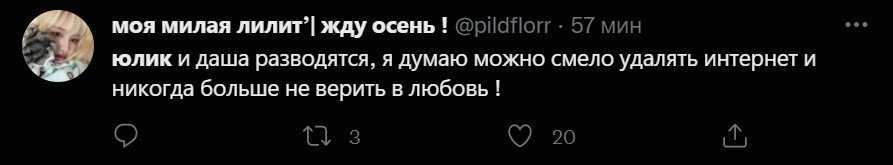 «Я сначала подумал, что это пиар-ход, потом залез в комменты у Юлика под последним роликом и понял, что вряд ли кому-то такой пиар-ход нужен. Я не хочу быть человеком, который говорит прописные истины, но никто не должен оставаться в отношениях, если у человека нет чувств к своему партнеру, партнерше