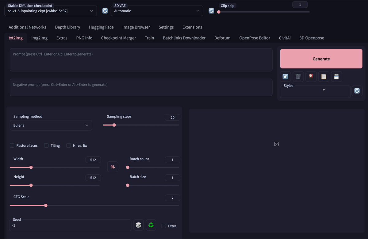 Вы перейдете в веб-интерфейс Automatic 1111, которым пользуются те, кто устанавливает Stable Diffusion локально. Настроек множество: вы можете выставить любое разрешение картинки, количество шагов для генерации и сэмплер. В модели также встроен плагин ControlNet, который может генерировать изображения по готовой картинке, наброску или позе.