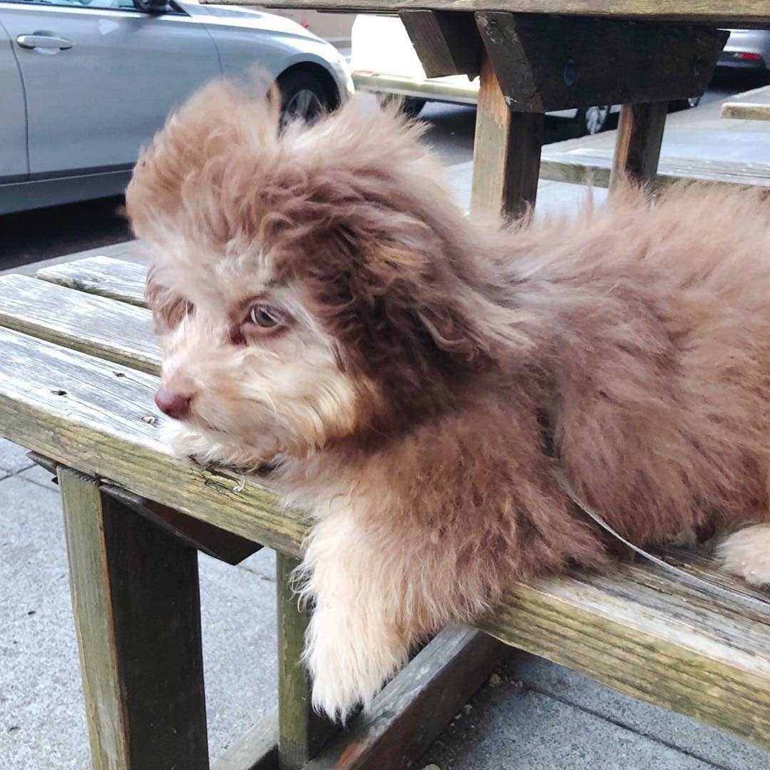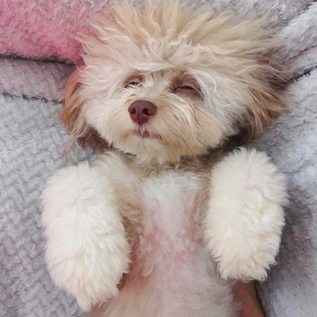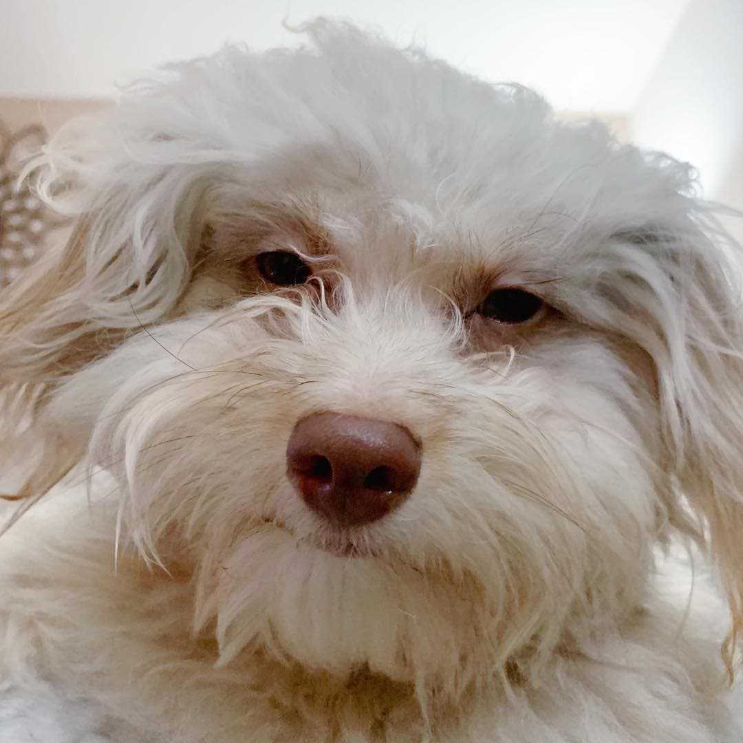 Как позже рассказала Шанталь, раньше у Йоги было обычное «собачье» лицо, но недавно его подстригли и именно поэтому он стал так необычно выглядеть. На фото ниже Йоги до стрижки и выглядит как обычная собака.