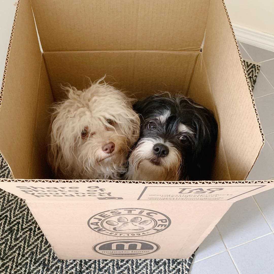 10. А еще у песика есть компаньон Боба, который тоже горячо любит коробки.
