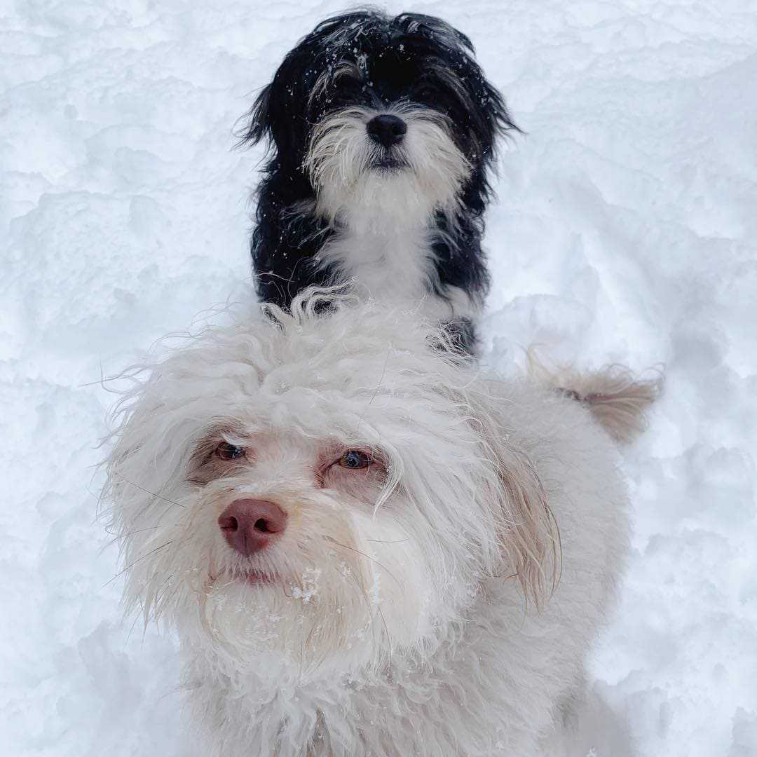 На фоне другого песика Йоги вообще не воспринимается как собака. Вроде кто-то ради шутки видоизменил черты щенка на человечьи.