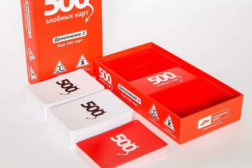 - Красный набор — еще одно расширение для основного набора. В комплекте есть двести новых карточек, чтобы сделать вечер еще веселее и безумнее. К игре добавятся новые персонажи, в виде Дятлов-сосунов. На каждом углу вас будет поджидать пьяный экипаж русского танка, а трехметровые криптонитовые болты только и будут ждать момента, чтобы проверить ваше чувство юмора на прочность.