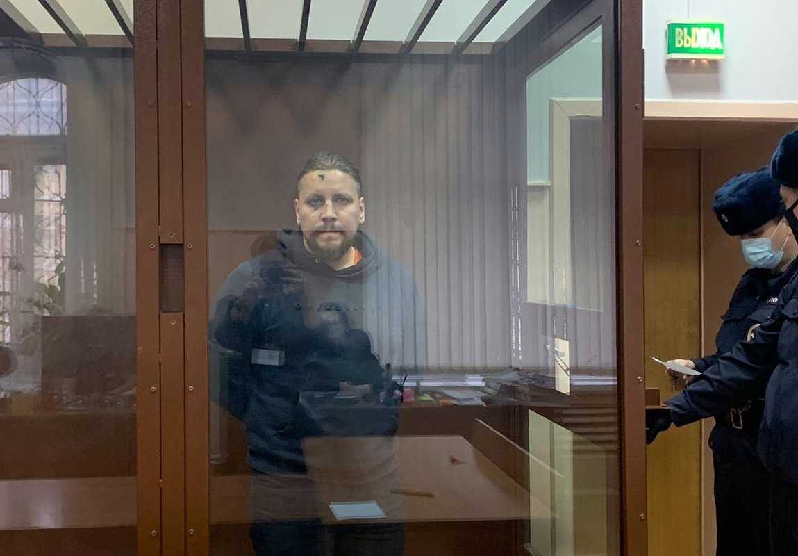 Максим Хотулев, обвиняемый в убийстве на национальной почве, на заседании Басманного суда Москвы. 24 декабря 2020 года