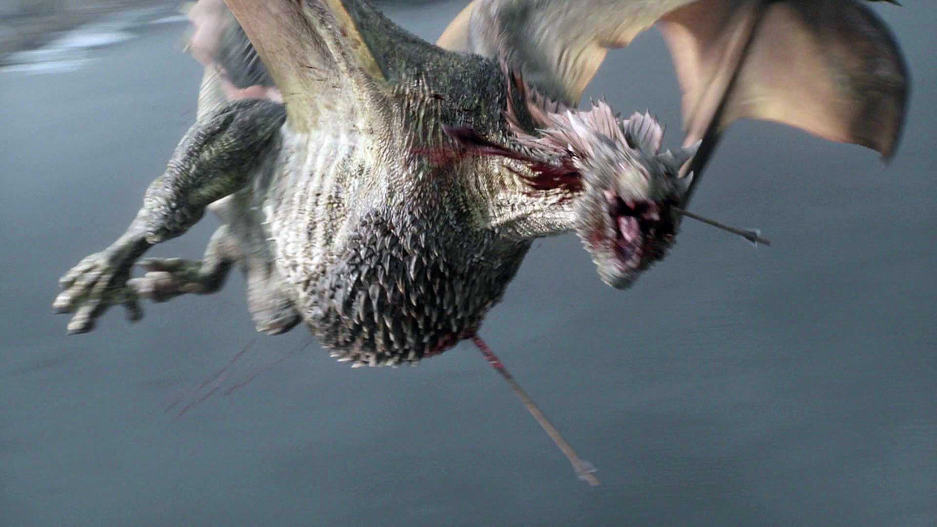 дракона — Рейгаля, которого пронзают стрелами из баллисты.