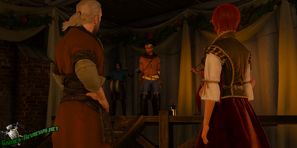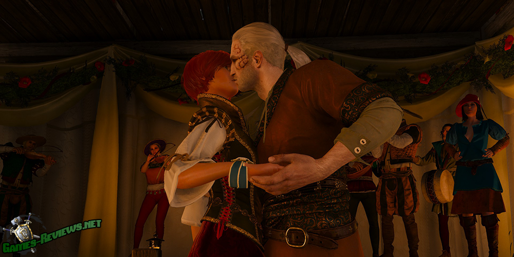 После выполнения любых двух забав (не учитывая незначительных), подойдите к центру двора и Витольд услышит музыку, доносящуюся из амбара. Он незамедлительно схватит Шани и потащит внутрь чтобы потанцевать. При этом он будет постоянно хвастаться тем, что лучшего танцора чем Витольд Фон Эверек не сыщешь во всей Редании, и танцует он действительно хорошо. Веселья не испортит даже появившийся на свадьбе Гюнтер О’Дим, объявивший со сцены о том, что музыканты сыграют для ведьмака Геральта из Ривии и его очаровательной подруги Шани нечто более… Романтичное.