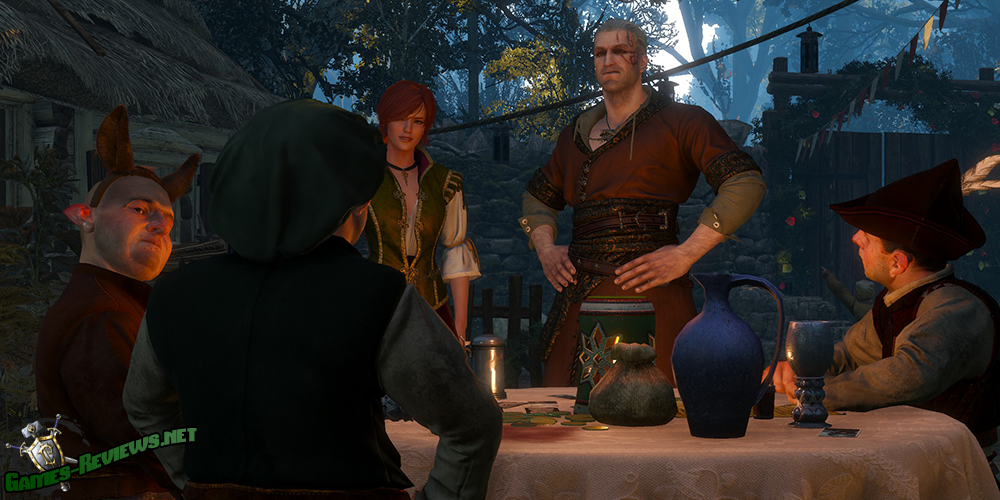 После прогулки по лесу, можно и партийку в гвинт сыграть. Подойдите к столу, за которым три низушка будут перекидываться в карты. Один из них особенно выделится надетыми на голову оленьими ушками. Витольд небрежно обратиться к одному из них как к «мелкому», из-за чего возникнет конфликт и два других низушка потребуют извинений от «Геральта». Можно извиниться, а можно этого и не делать — это совершенно ни на что не повлияет. Будучи уверенным в своём мастерстве, Витольд поставит на кон всё, что у него есть, и игра начнётся. Противник будет играть неплохо укомплектованной колодой Королевств Севера, выбрав в качестве лидера карту «Фольтест Железный Владыка», уничтожающий самую сильную карту/-ы осадного ряда на стороне ведьмака, если суммарная сила ряда равна или больше десяти. Советуется играть колодой Монстров или Скоя’таэлей, если они достаточно сильные, а если этими колодами играть не умеете, то выбирайте предпочитаемую колоду, но старайтесь не налегать на карты осадного ряда.