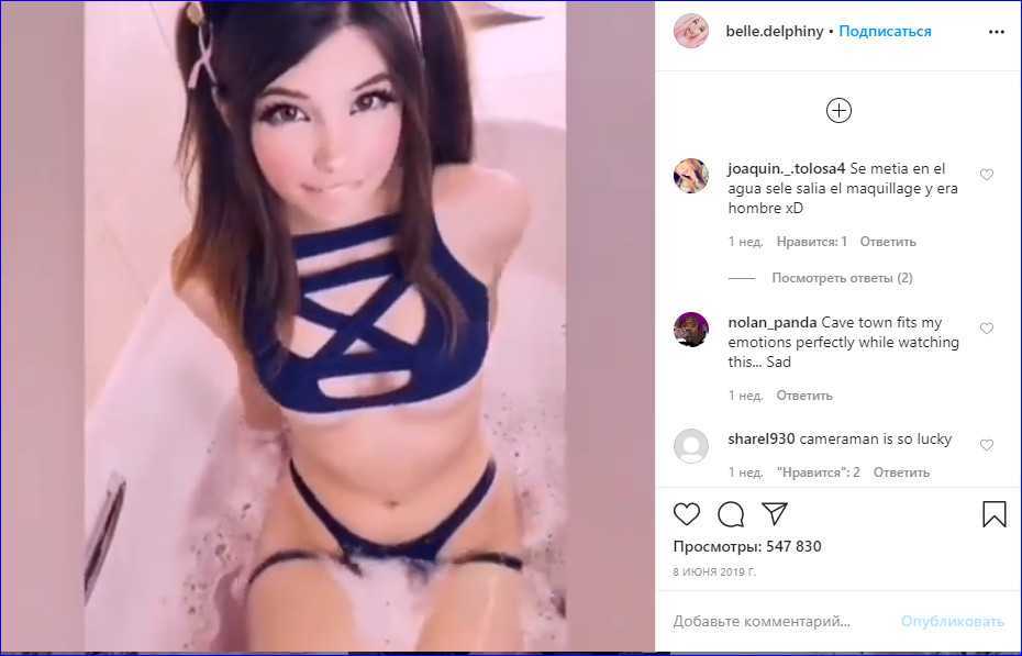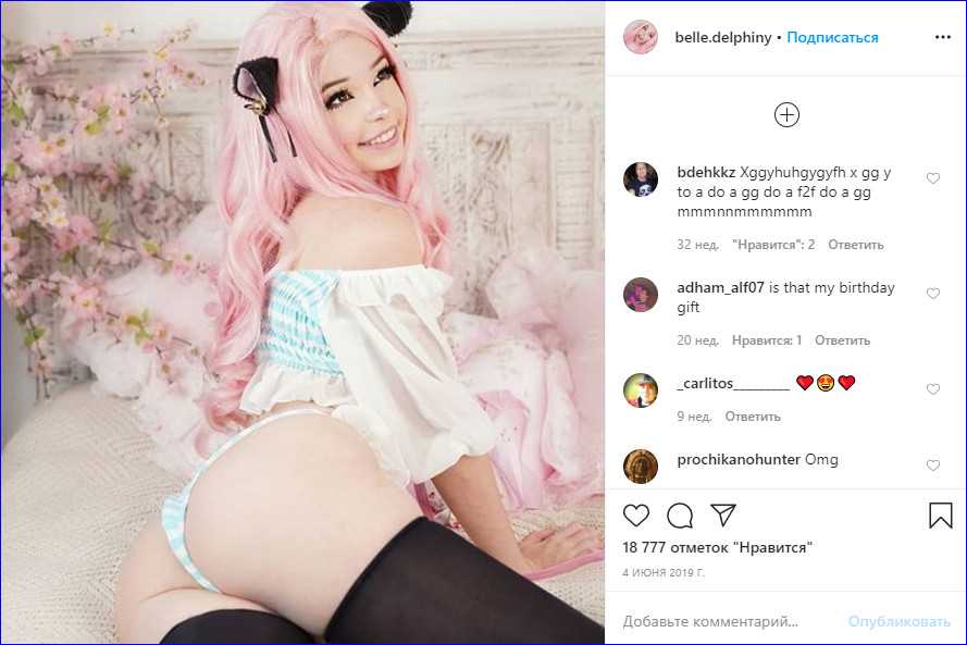 Откровенные фотографии и видеоматериалы Бель Дельфин стали выкладывать на своих страничках ее клиенты с сайта «Patreon». Парни писали, сколько денег они заплатили модели и что они получили взамен. Судя по комментариям, люди разделились на 2 лагеря: те, кто обожает творчество новоиспеченной знаменитости и те, кто считает ее ненормальной и аморальной.