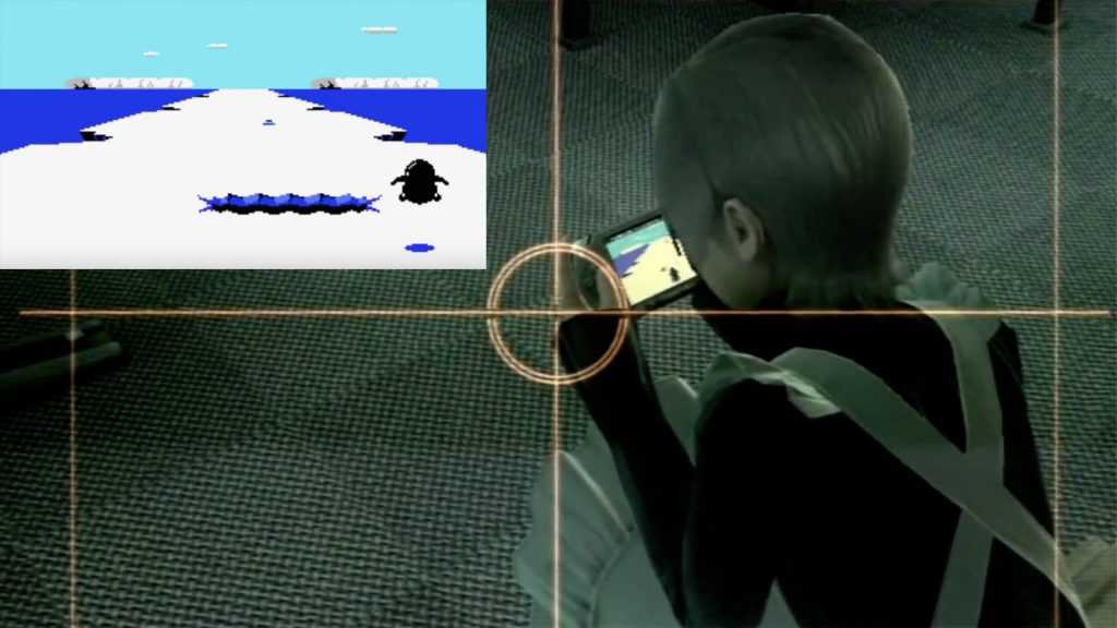 Санни играет на PSP в первую игру Кодзимы. Подглядывать нехорошо, но это слишком мило, чтобы устоять. Девочка играет в Pinguin Adventure — уверен, почти все вы в нее тоже играли, но даже не думали, что в ее создании участвовал Хидэо Кодзима.