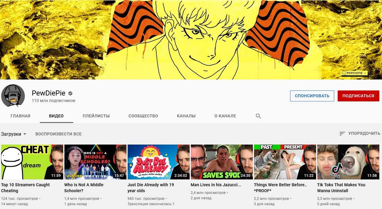 Самый известный зарубежный блогер (потому что самый богатый). Сейчас уже он не так популярен, пару раз забрасывал свой канал. Основной доход приходиться на стримы, на которых он играет в различные видео игры.