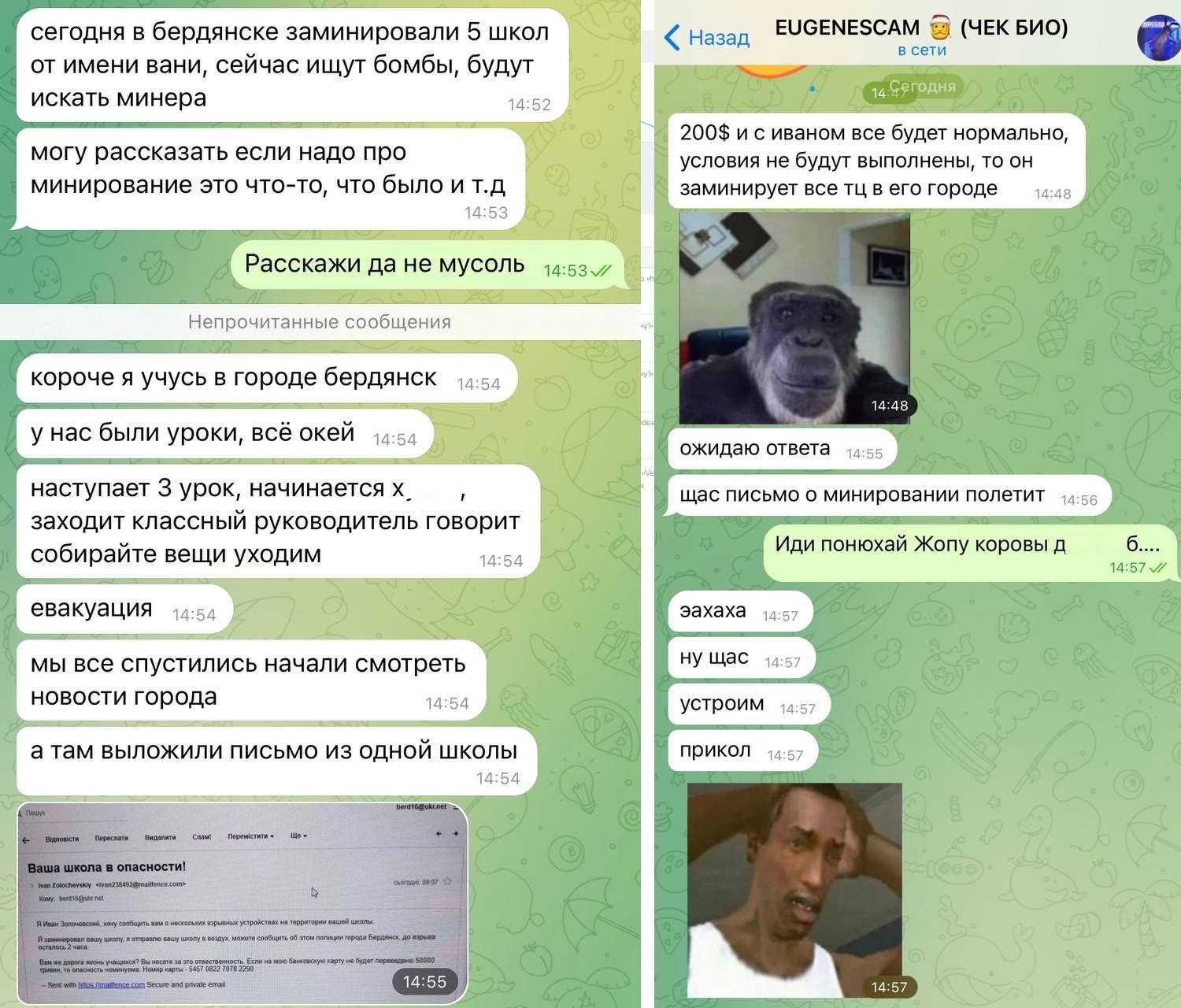 Позднее некоторые стали угрожать, что могут от имени Золо звонить в торговые центры и школы, сообщая о минировании, и требовали деньги. Что касается инцидента в Бердянске, то друг Ивана рассказал, что преступники оставили настоящий номер карты, и их уже удалось вычислить.