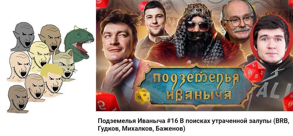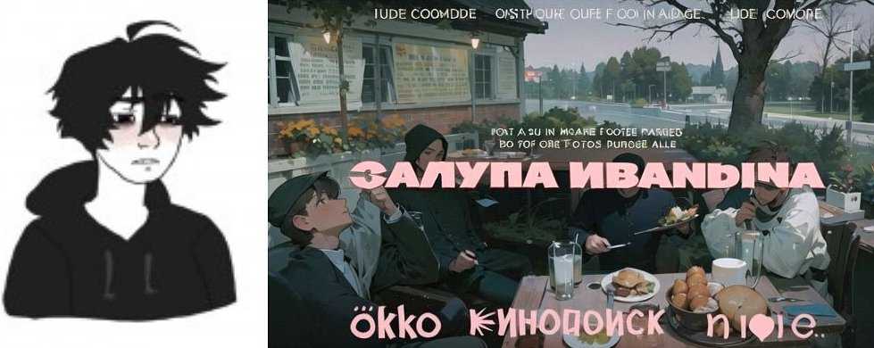 На картинке молодой человек выказывает недовольство при виде рекламы сериала, который, как утверждается на изображении, был создан при поддержке Министерства культуры России и выходил на каналах «Россия 1» и «Домашний». Ниже изображен постер того же сериала, но в приглушенных тонах и с логотипами популярных онлайн-кинотеатров. «Метахтонический прототриллер об абьюзе в русской глубинке», — гласит описание. Второй, более модный вариант истории про Иваныча юношу приводит в восторг