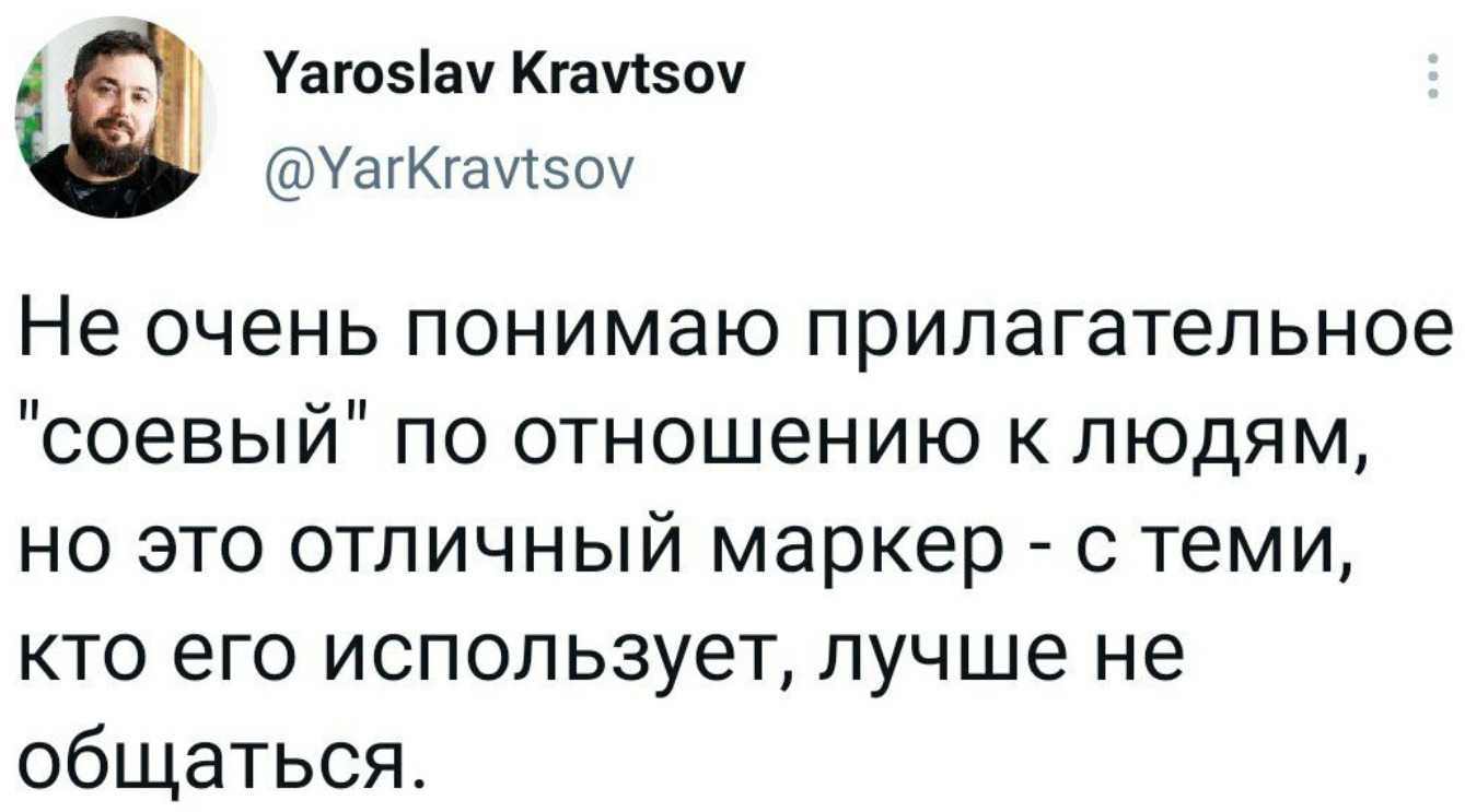 Стоит отметить, что похожее мем-течение не всегда высмеивает молодых людей и подростков. Герой аналогичного тренда — сойджек, или «соевый» вояк (термином «соевый» обычно обозначают мужчин, которые якобы недостаточно маскулинны). В одном из мемов сойджек недоволен архитектурой Самары, зато в восторге от зеркального здания в Стокгольме. На фото нет разницы? Попробуйте объяснить это сойджеку.
