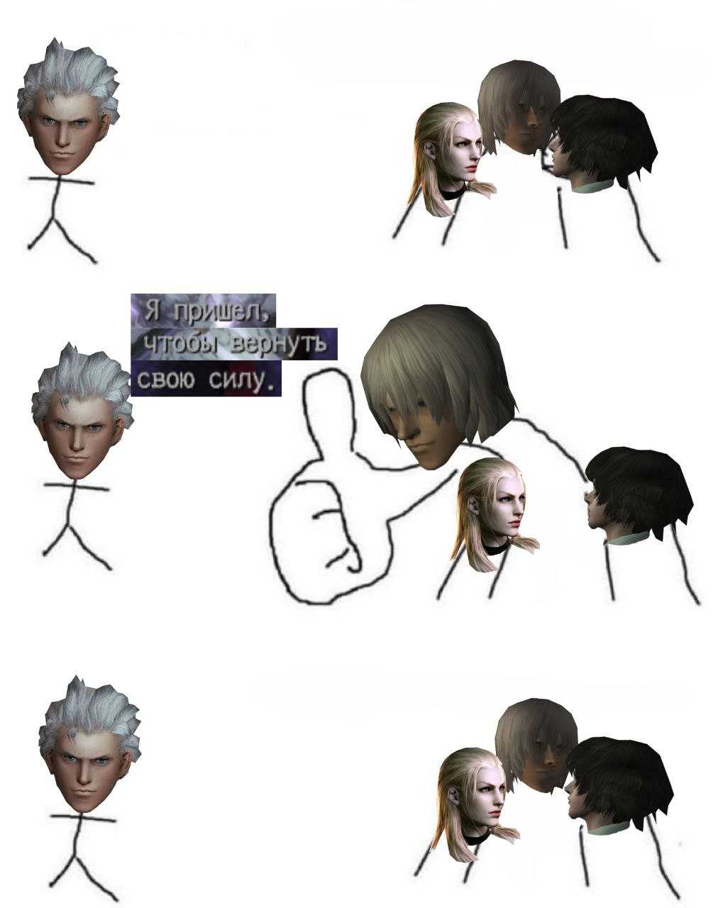 Позже шаблон попал в паблики о мемах в телеграме. Например, администратор сообщества into the void because i’m annoyed опубликовал шутку о персонажах игры Final Fantasy.