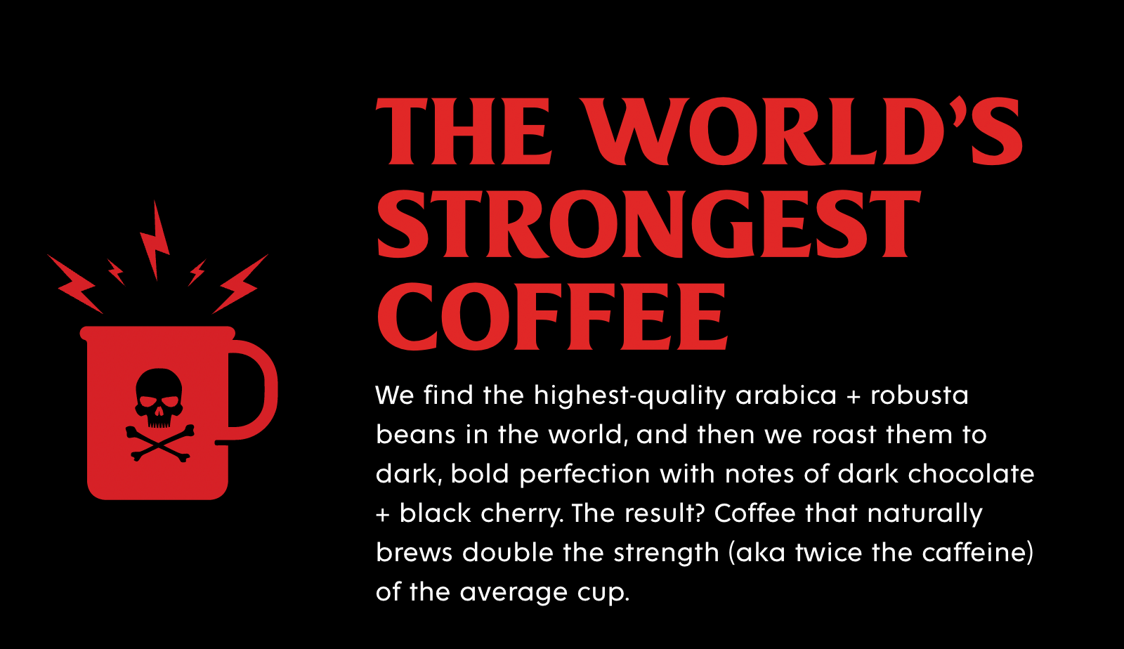 УТП компании Death Wish Coffee — «Самый крепкий кофе в мире». На сайте бренд использует формулировку без изменений