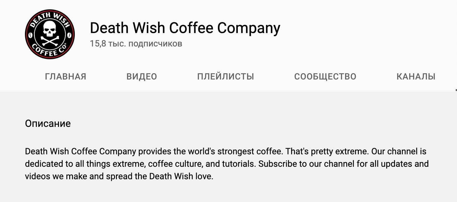 В описании YouTube-канала Death Wish Coffee добавляют, что крепчайший кофе в мире — это достаточно экстремально, поэтому и сам канал посвящен экстремальным вещам