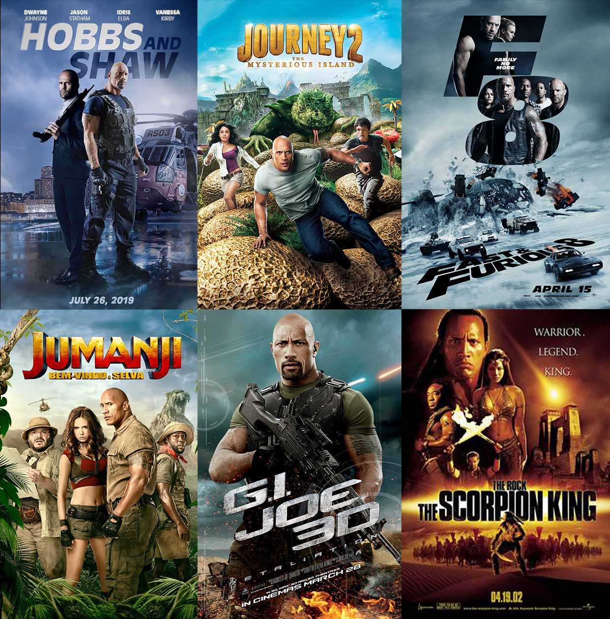 Среди самых известных фильмов с ним такие, как «Форсаж» с пятого по восьмой и спин-офф «Форсаж: Хоббс и Шоу», две части «Джуманджи», сиквел экшена «G.I. Joe» по игрушечным солдатикам, вторая часть «Путешествия к центру Земли». Кроме этого с ним выходили успешные самостоятельные картины: «Моана», «Разлом Сан‑Андрес», «Полтора шпиона» и «Рэмпейдж». А самая новая – «Чёрный Адам» от DC – приоткрыла ему ещё и дорогу в супергеройское кино, хотя и не очень удачно.