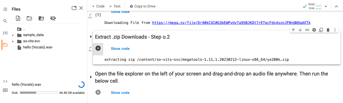 В папке слева — wav-файл с а капеллой. Осталось только нажать на последнюю ячейку