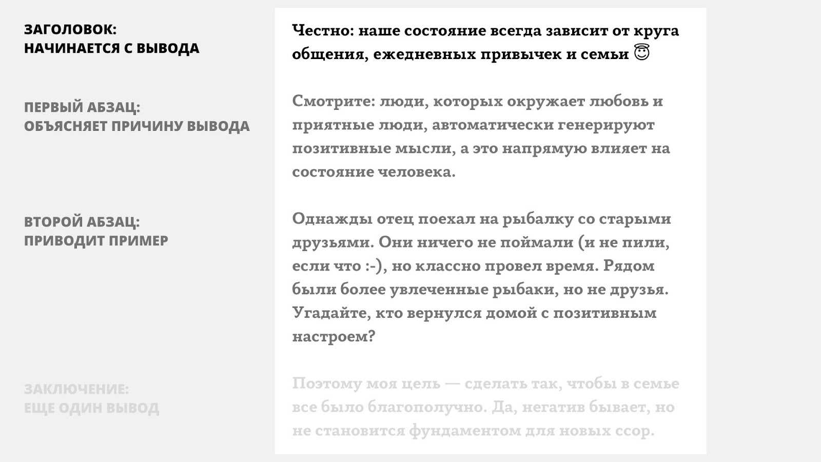 - Раскрывается суть поста. Один абзац – одна мысль.